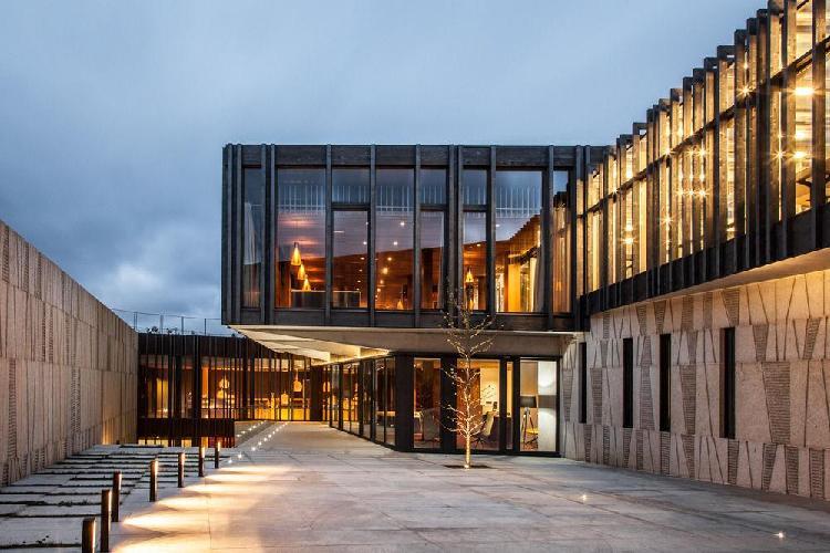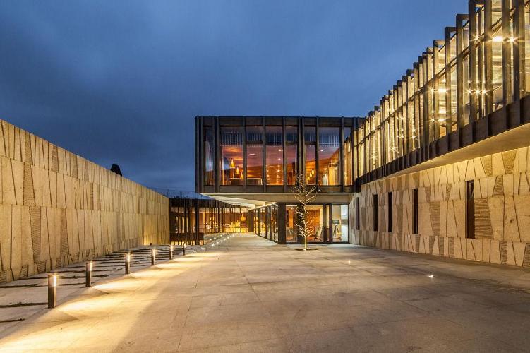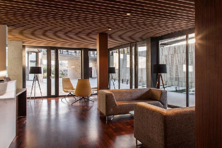 Situé à Santa Maria de Armenteira, il dispose d'une architecture contemporaine, mais au même temps, integrée avec l'environnement et les ressources naturelles, culturelles et historiques de la région. L'établissement se compose de plusieurs bâtiments répartis sur la parcelle d'une manière progressive et adaptée à la topographie, reliés entre eux et directement liés avec l'espace extérieur. L'accès à la Pousada Armenteira se fait par le niveau le plus haut, une entrée en forme de cloître qui rappelle un monastère.